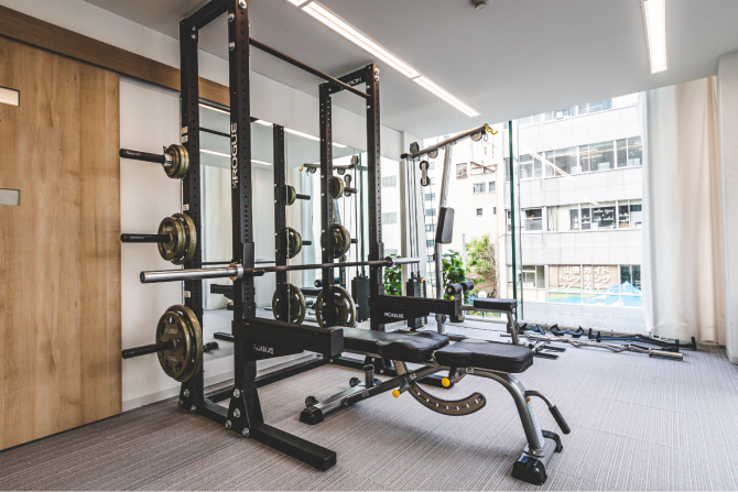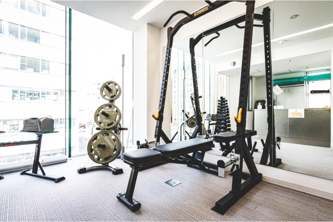 フリーウェイトからマシンまで様々なトレーニングを楽しむことができます。おしゃれで快適な空間で気持ちよくトレーニングしていただけるようご用意しております。 2ルームあるうち、ルームによって設備が違うため、お好きな設備がある方をご選択ください。